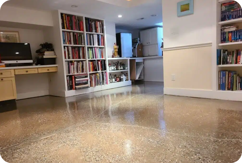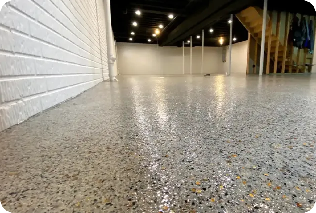 Our team of basement floor coating contractors’ flawless floor coatings help simplify basement cleaning for you.